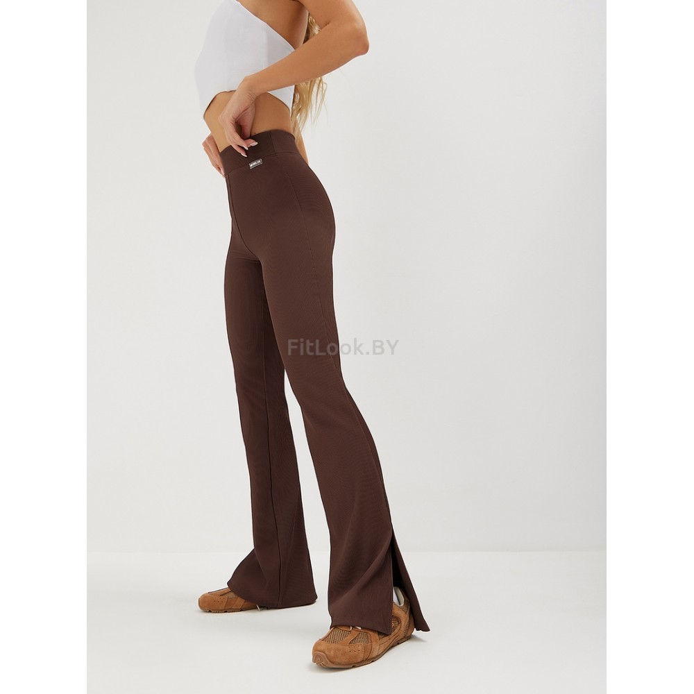 Брюки расширяются от колен, по низу – аккуратные разрезы. Пояс на резинке не пережимает и не давит в талии. Завершающий элемент – золотая брендированная нашивка. Сочетайте эти брюки с топами, футболками или лонгсливами – создавайте уникальные образы каждый день.