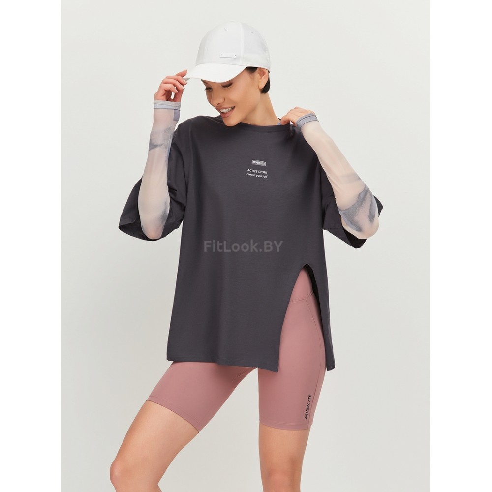 Футболка NEVERLATE прямого силуэта с разрезом – настоящий маст-хэв для вашего гардероба. Благодаря прямому, слегка объемному силуэту, вы можете завязать узел и освежить образ.