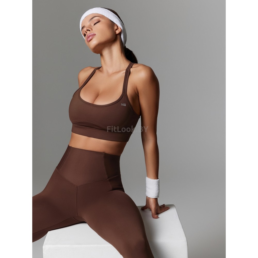 Двойные бретели переходят с плеч на спину, создавая элегантный узор. Топ подчеркивает красоту тела и поможет продемонстрировать ваши спортивные достижения. Эластичный пояс по низу модели обеспечит надежную фиксацию и комфорт на все время занятий.