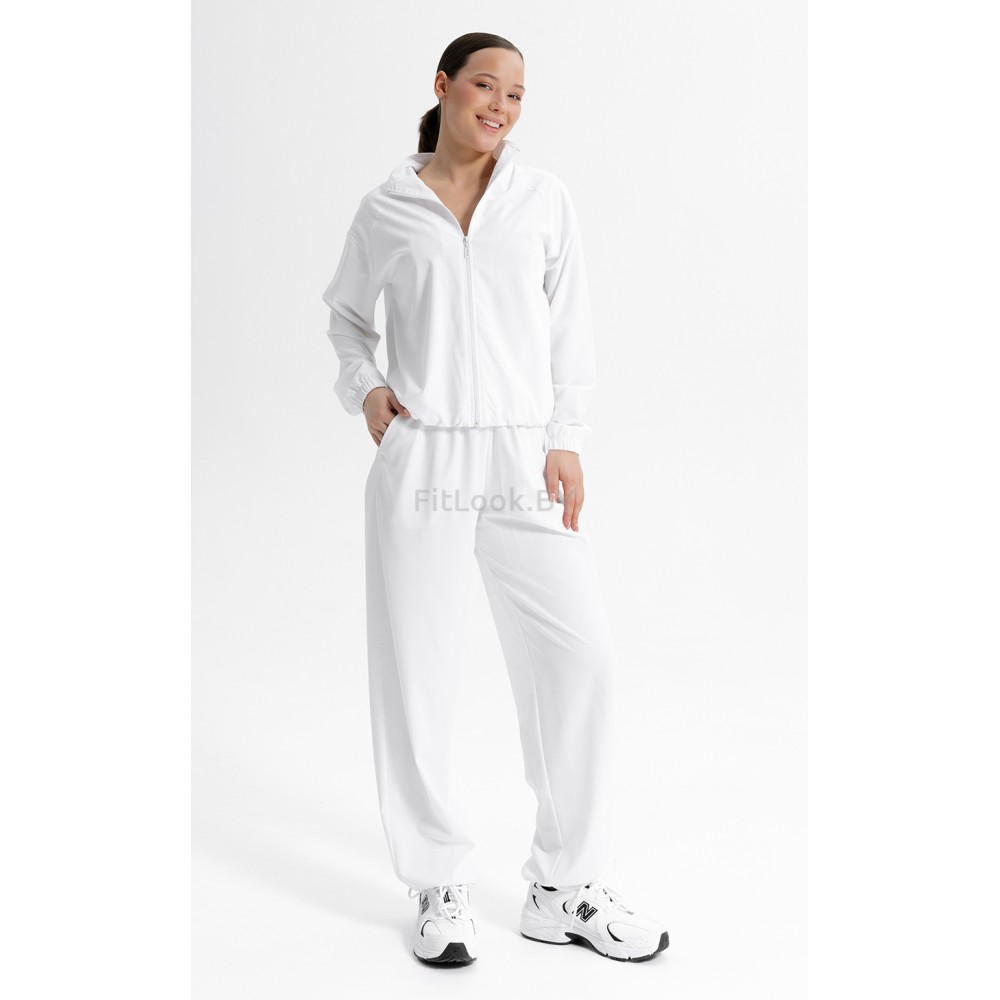- Свободный крой с мягкими резинками на манжетах и поясе создаёт комфортную посадку.